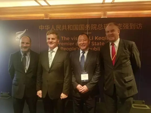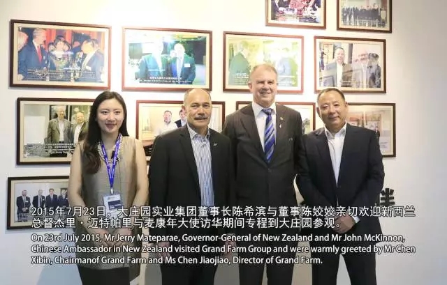 大莊園集團(tuán)董事長陳希濱與新西蘭貿(mào)易部長麥克萊(右二)、阿蘭茨CEO大衛(wèi)(右一)合影