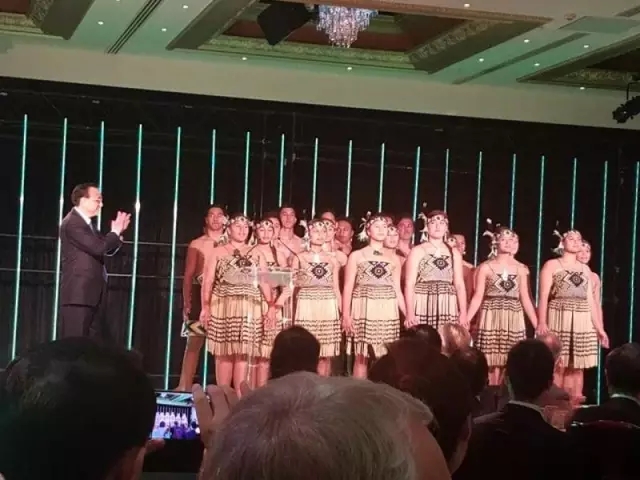 李克強(qiáng)總理欣賞新西蘭當(dāng)?shù)孛褡屣L(fēng)情表演,并致以熱烈掌聲